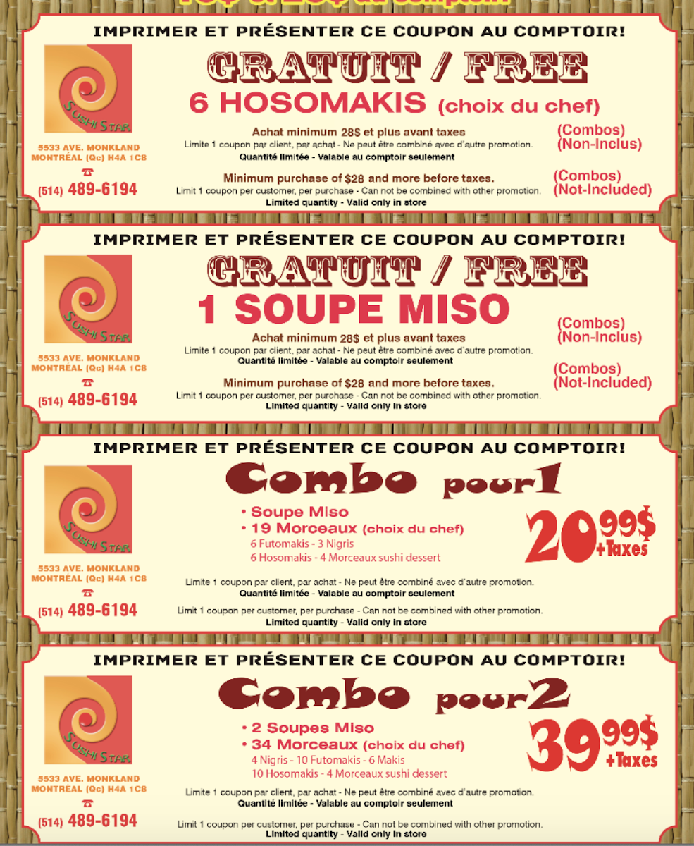 Welcome to Sushi Star, a hidden gem nestled at 5533 Monkland Ave in Montreal. Renowned for its delightful sushi and warm atmosphere, this eatery is a must-visit for sushi lovers. Customers, like Andrei Lazar, continuously rave about the freshly crafted rolls and exceptional service, stating it's an experience worth repeating.